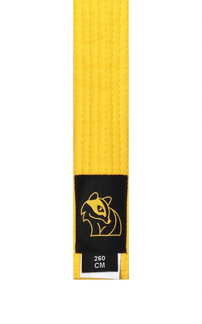 Budo žlutý pásek vyrobený z bavlny. Ideální pro řadu bojových umění, včetně juda, karate, jiu jitsu nebo taekwonda. Vícekrát prošitý.- šířka: cca 4,5 cm - 100 % bavlna