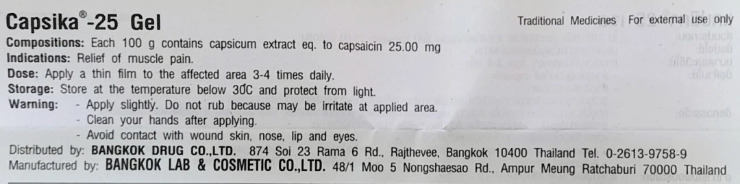Obsahuje kapsaicin, složku získávanou z chilli papriček, která je běžně využívána v hřejivých a masážních přípravcích.