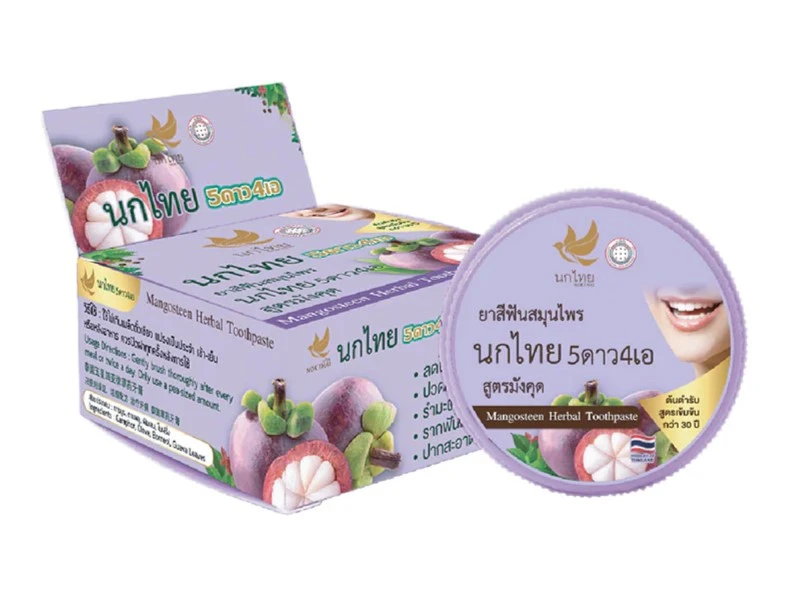 Nok Thai mangosteen je tradiční thajská suchá bylinná zubní pasta určená pro každodenní péči o dutinu ústní.