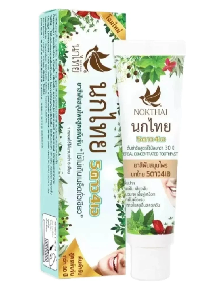 Nok Thai 5STAR4A je tradiční thajská bylinná zubní pasta určená pro každodenní péči o dutinu ústní.