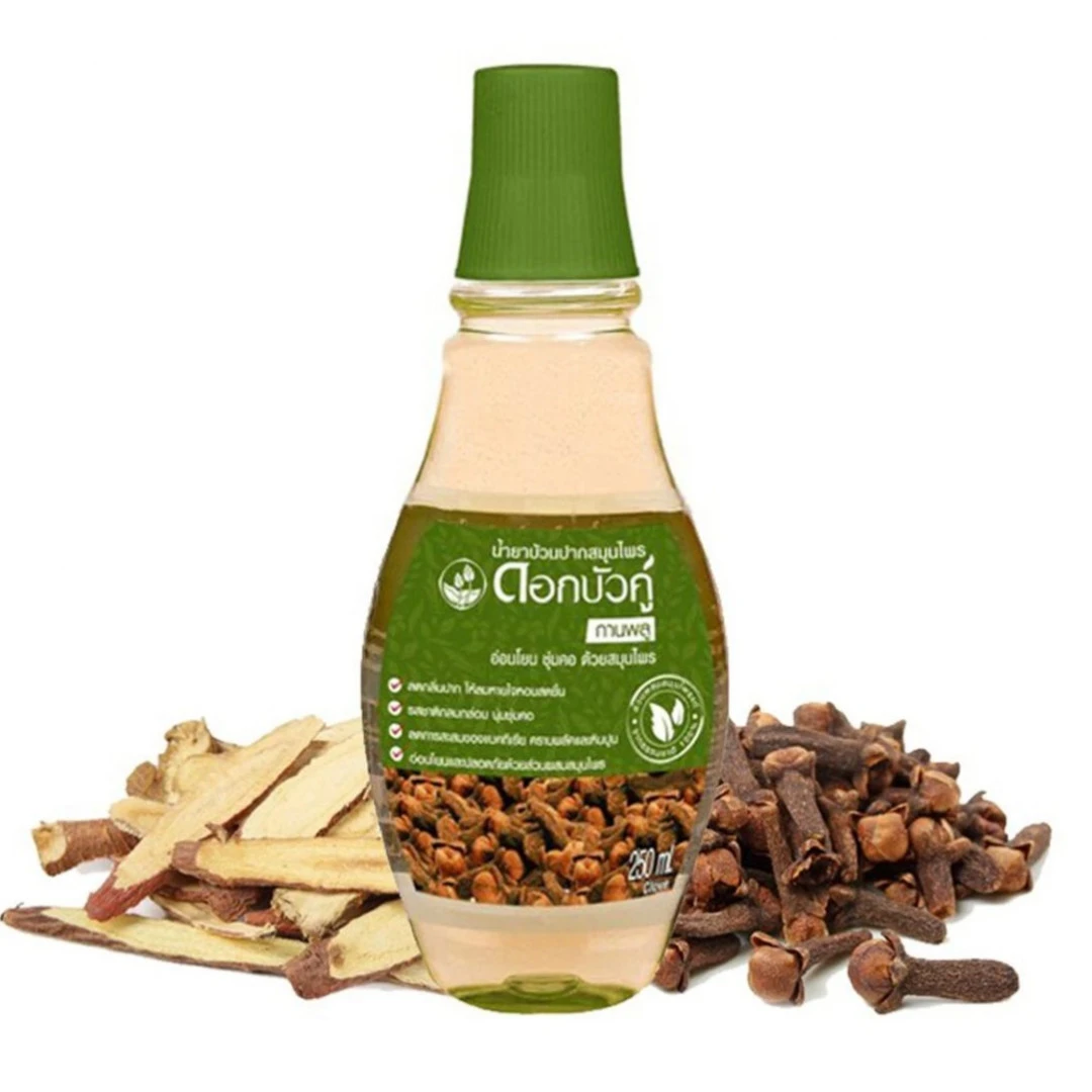 Dok Bua Ku ústní voda, bylinná ústní voda, hřebíček, mouthwash, ústní hygiena, svěží dech, herbal mouthwash.