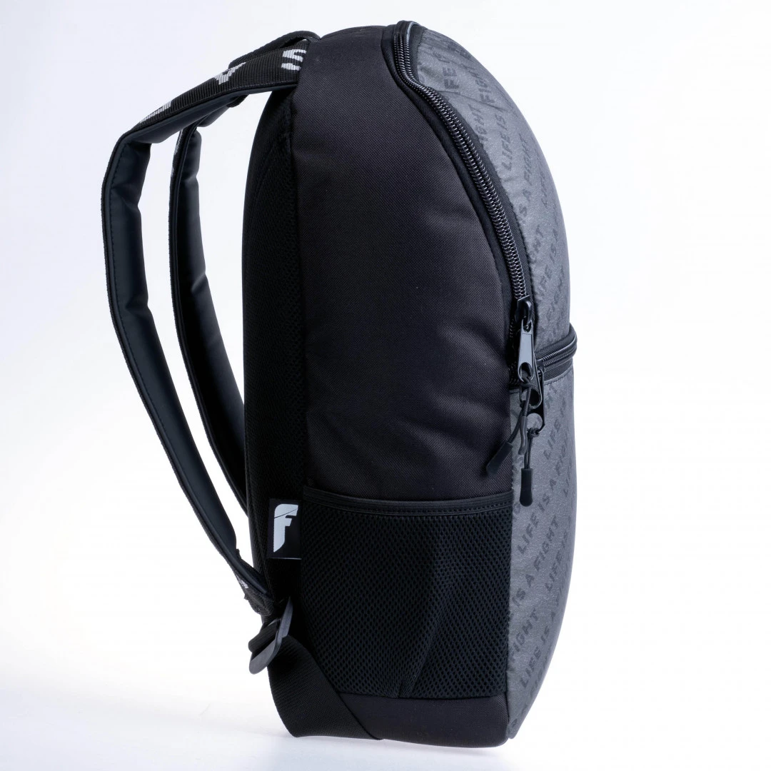Fighter batoh - logo šedá od značky Fighter, která se na českém, evropském a americkém trhu specializuje na produkci špičkového vybavení pro bojové sporty a umění. Tento středně velký batoh Vám skvěle poslouží pro nošení sportovního vybavení, ale i běžných věcí. Batoh je vyroben z nepromokavého materiálu. Vnitřní prostor obsahuje kapsu na notebook a dvě menší kapsy. Celkový objem batohu je cca 15 litrů. Na vnější přední straně je umístěna větší kapsa na zip. Dvě boční kapsy pro uložení láhví jsou samozřejmostí. Záda jsou vyztužená. Popruhy jsou podšité měkčenou koženkou. Vyrobeno v České republice Sublimovaný tisk Všechny použité materiály vyrobené v EU Kapsy na láhve na bočních stranách batohu